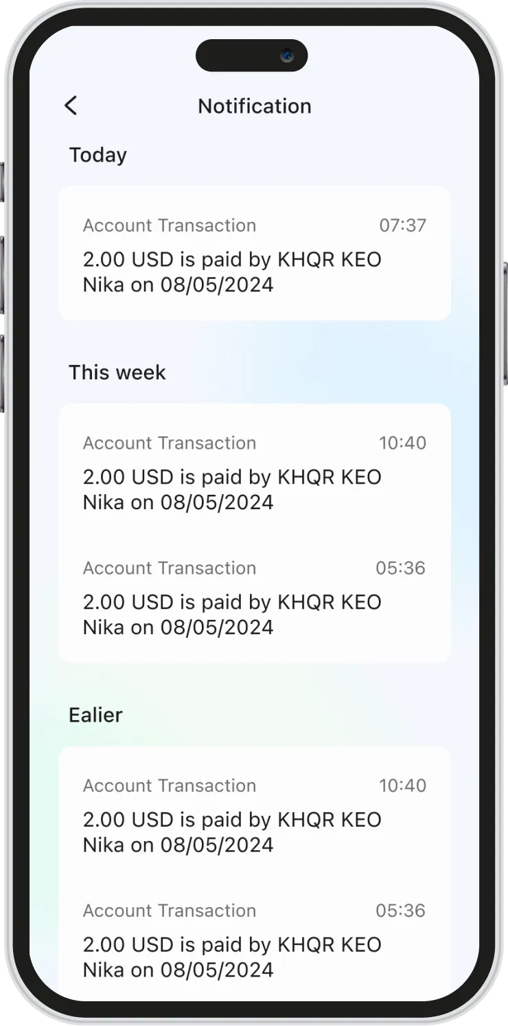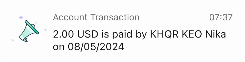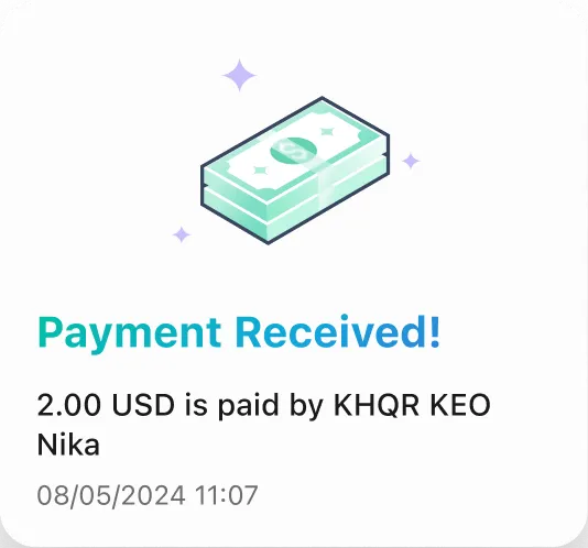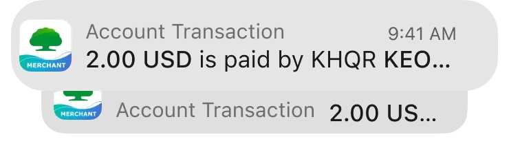 Every payment triggers two things at once — an in-app transaction record and a system push notification. Whether the owner is in the app or not, they never miss a payment.