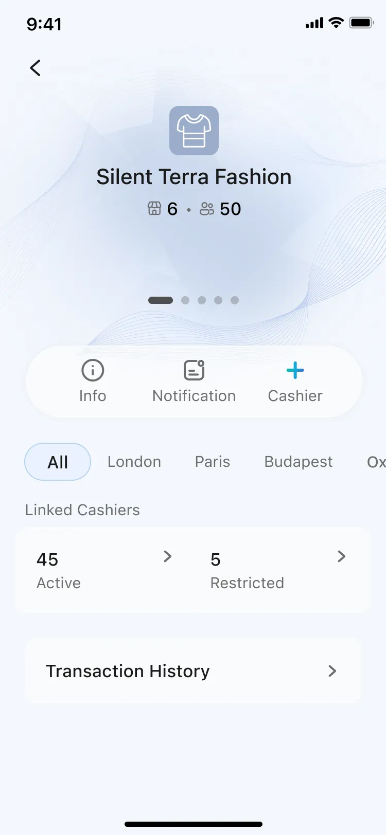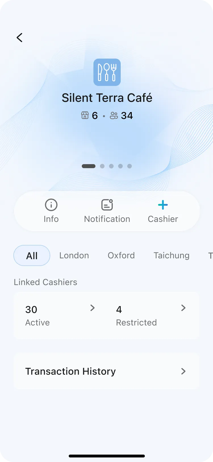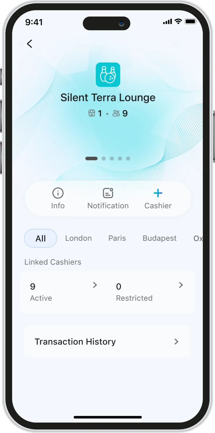 Branches, cashiers, and performance — all from one screen. Owners switch between locations without losing context.