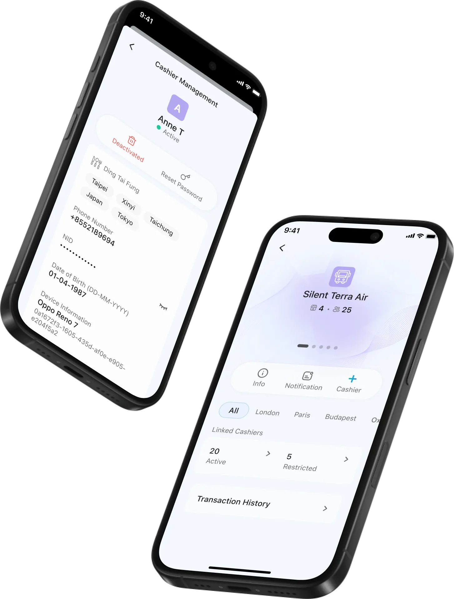 3 steps to add a cashier, assign them to a branch, and set their permissions. Owners stay in control without the admin overhead.