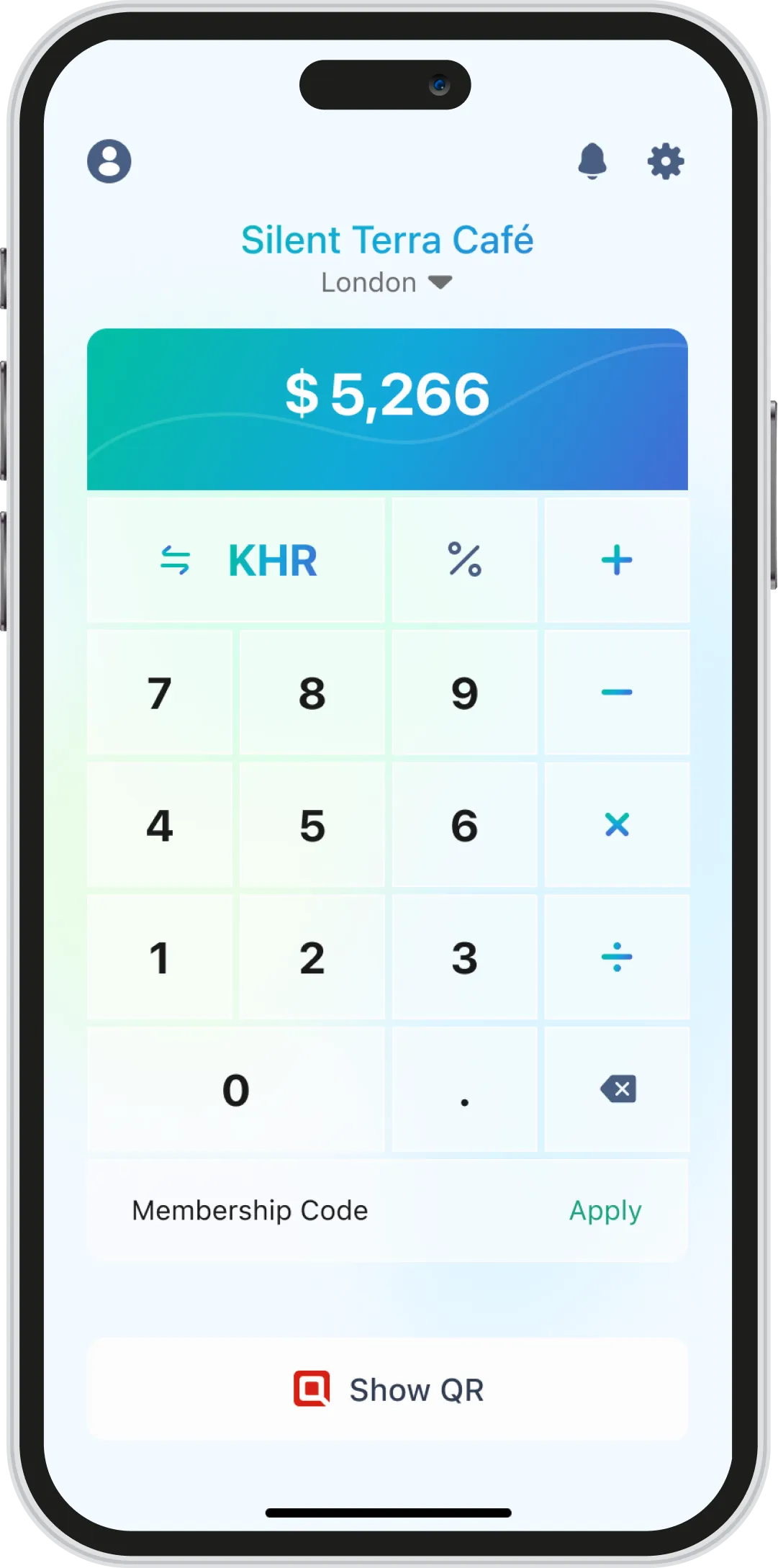 Input amount, generate QR, collect payment. One flow, no app-switching, no mental math.