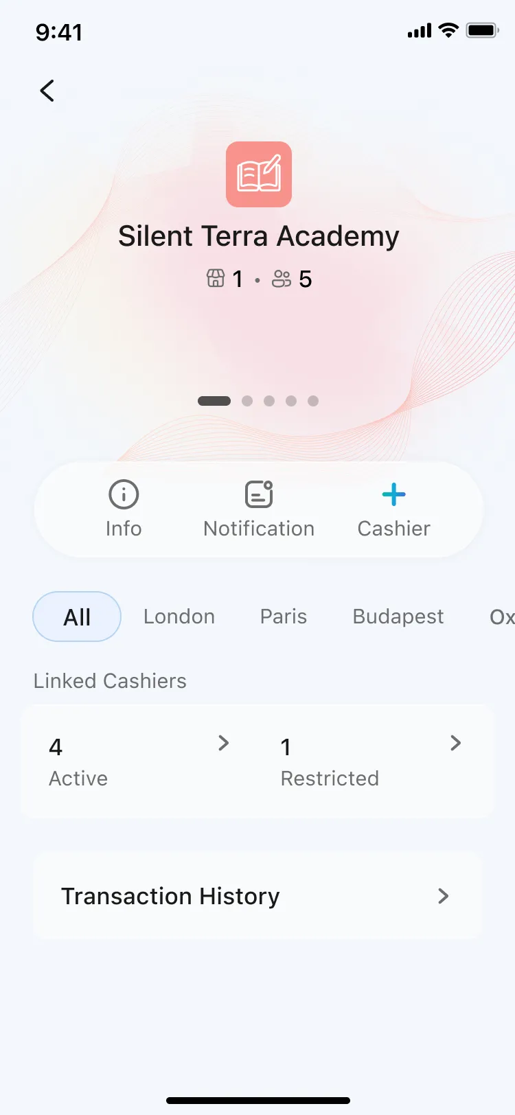 Strong on QR payment, but merchant management is an afterthought. The home screen is built for consumers, not merchants.