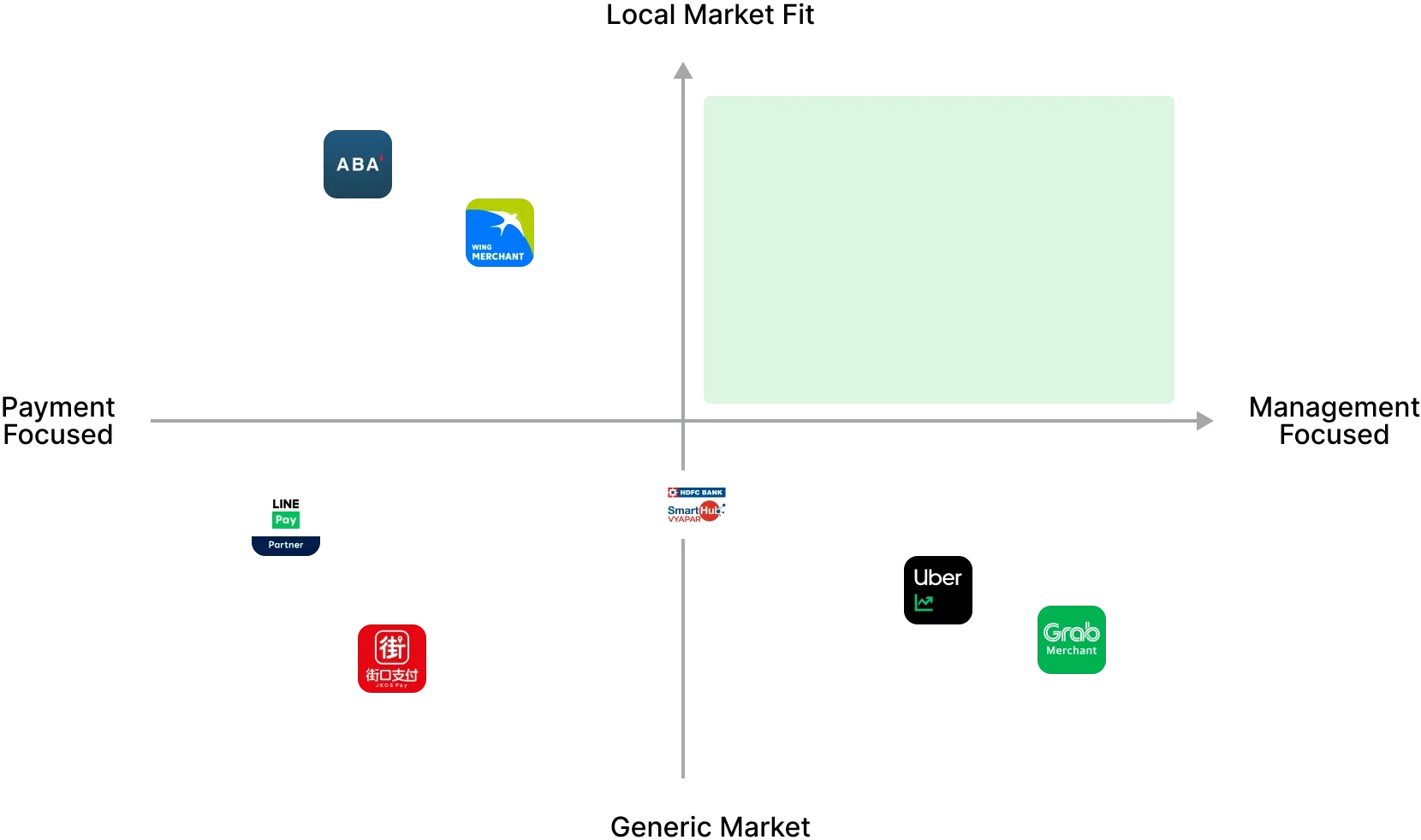Each category does one thing well. We took the best from all three — QR payment from banking apps, ecosystem thinking from e-wallets, and management structure from service platforms — and built them into a single product designed specifically for Cambodian merchants.