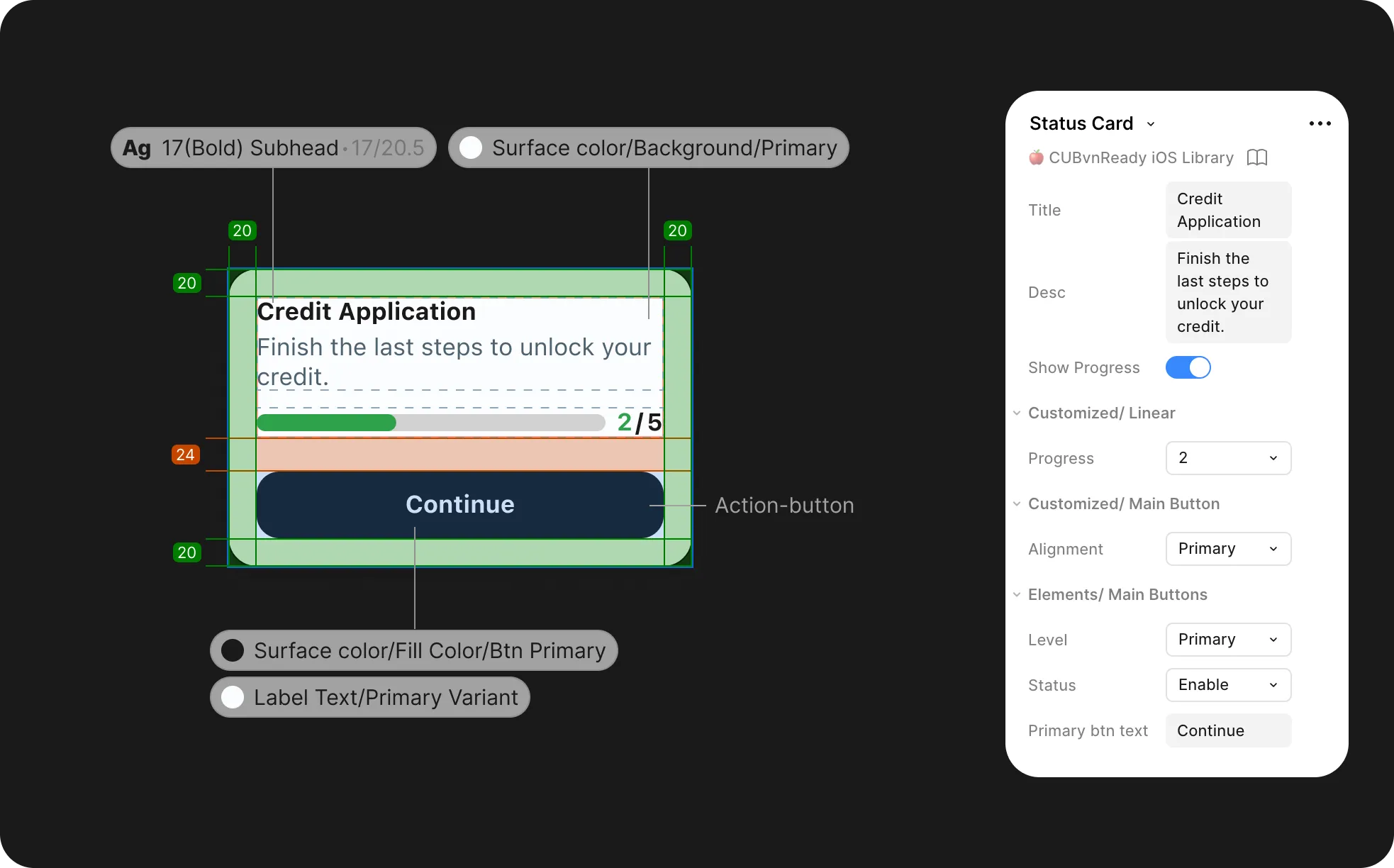 Components are annotated with spacing, color tokens, and property rules, then published to the shared library — giving developers everything they need while keeping every screen in sync.