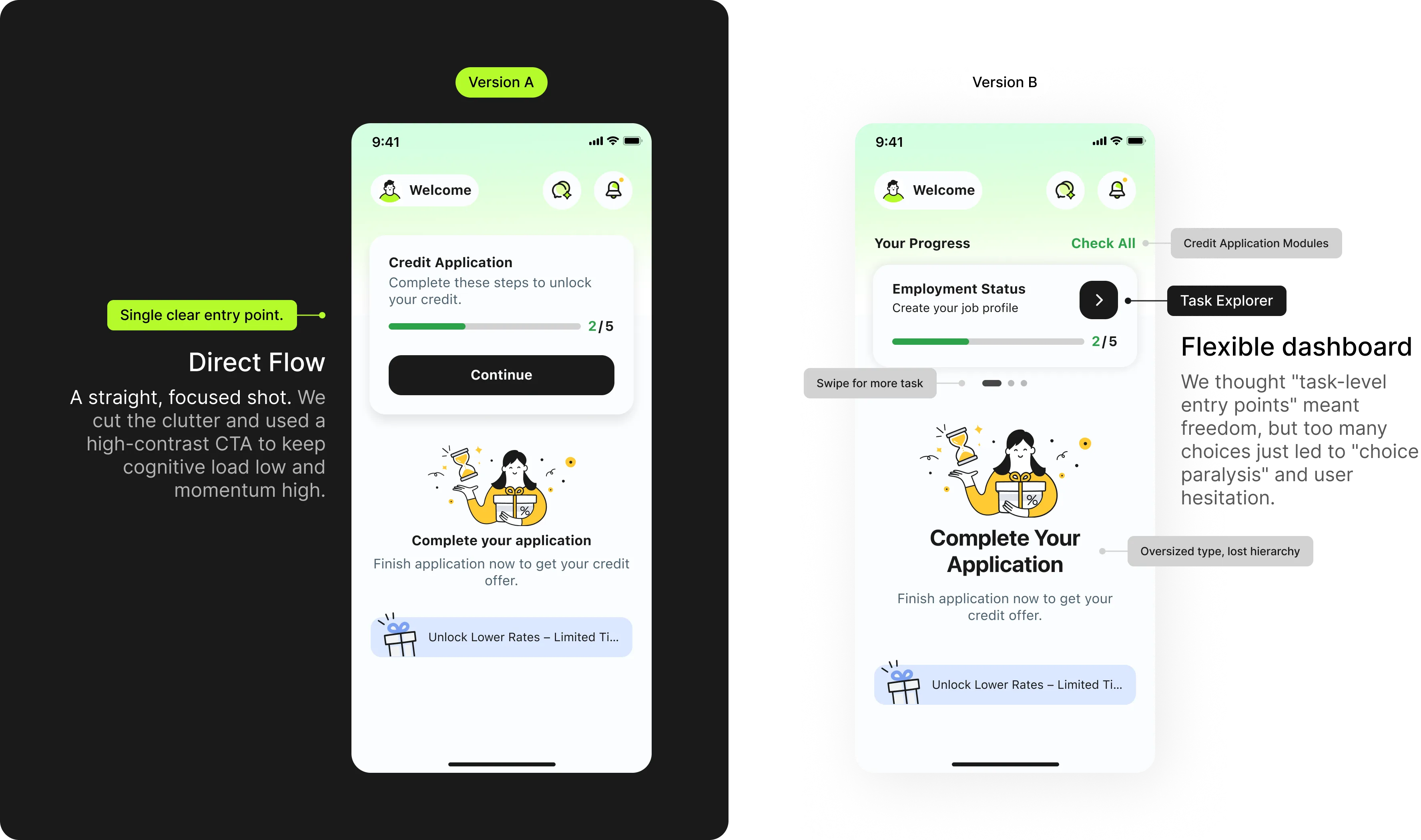 Two silent UX failures were quietly killing growth: a credit application users couldn't finish, and a verification step users couldn't pass.