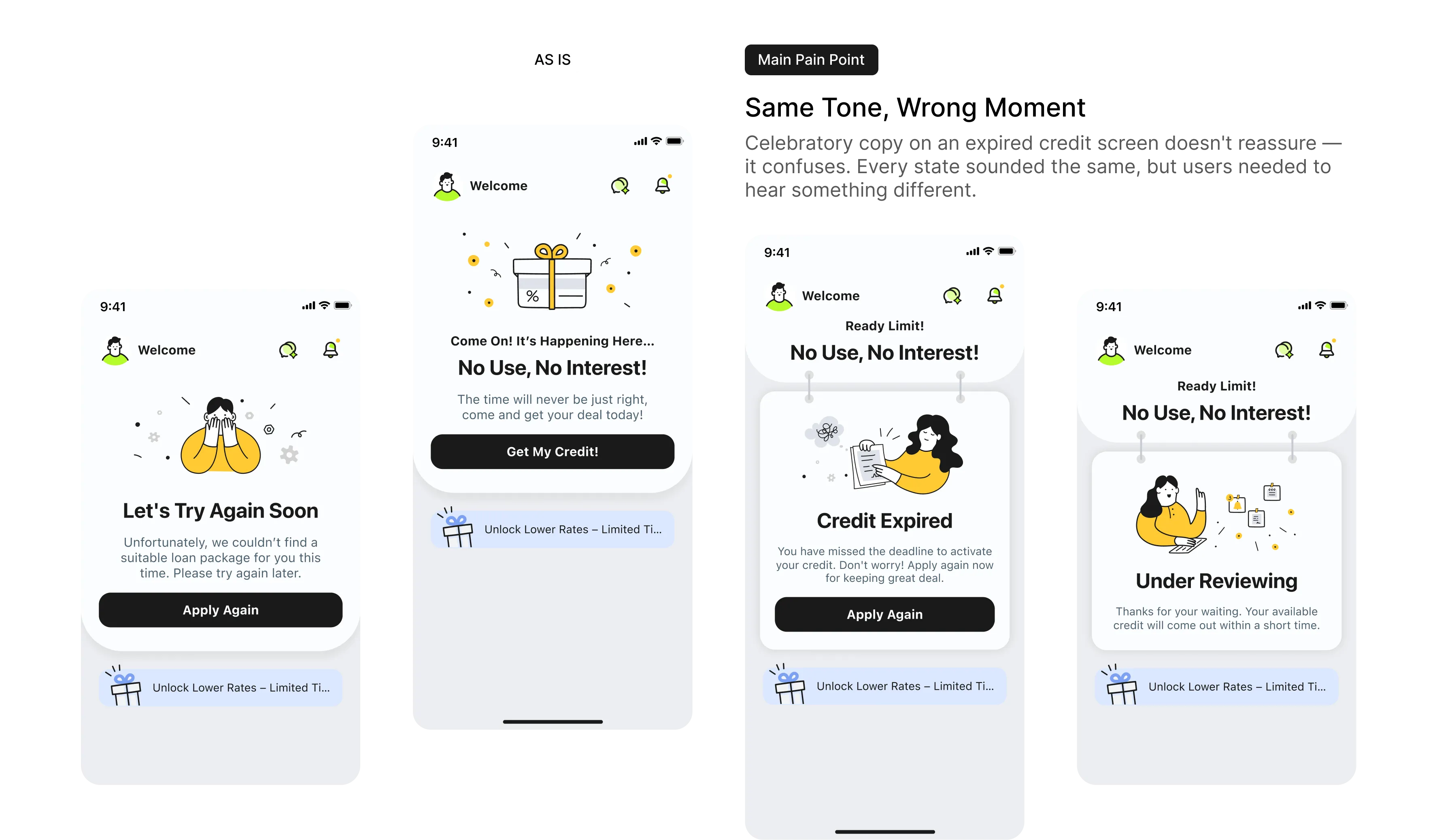 Title One Page, Four User States, One Consistent Voice