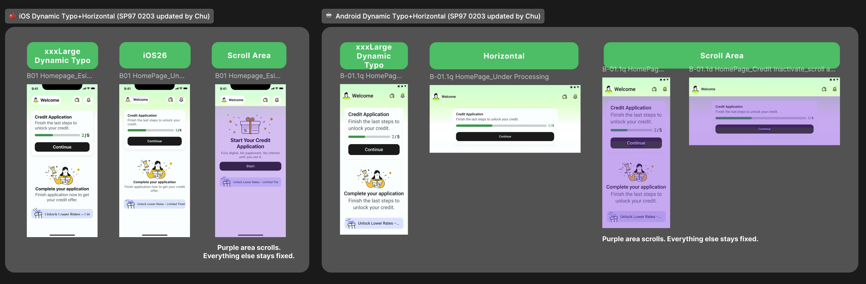 Dynamic type scaling ensures every user can read comfortably — regardless of device or ability. Android goes further with horizontal layout support, while iOS 26 alignment keeps the experience native and familiar for users on the latest system.