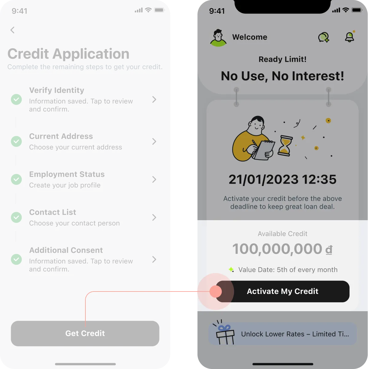 Without click the "Activate My Credit"